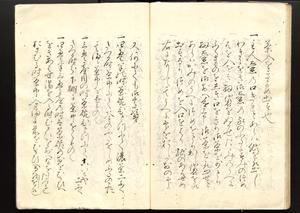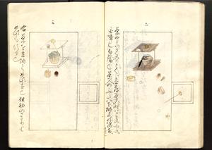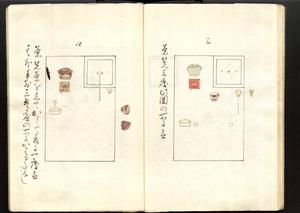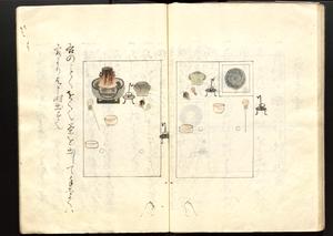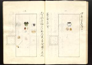 | 注記 | 写本 表紙付箋に「遠州流彩色絵入点前等解説」とあり 帙入り |