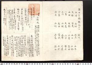 | 内容 | 山崎 山村 山森 山本 矢部 安見 山口 山路 山田 矢野 山岸 安田 八島 矢島 山下 安井 山内 山根 山原 山辺 八十島 矢田 安武 山脇 山名 山科 山家 保田 |