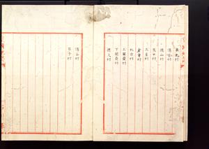 | 内容 | 宮竹村 宮竹新村 三口村 長滝村 莇生村 岩内村 火釜村 来丸村 湯屋村 徳山村 辰口村 三屋村 倉重村 北市村 上開発村 下開発村 徳久村 湯谷村 石子村 |