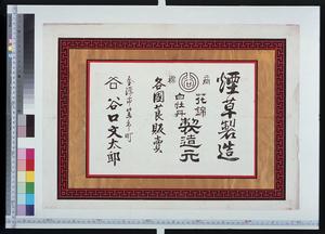 | タイトル | 煙草製造 花錦 白牡丹製造元 各国莨販売 谷口文太郎 |