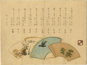 | 注記 | 画題:梅、鳥、松の柄の扇 |