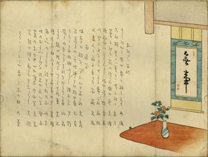 | 注記 | 画題:無事の掛軸と椿の一輪挿し |