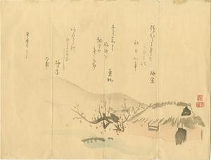 | 注記 | 画題:民家と梅と橋のかかった川 |