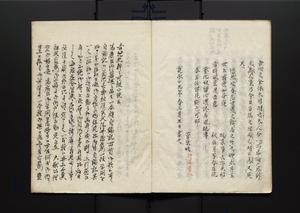| 解説 | 漢文で人の道を説いた教訓書。寛永19年の著。末尾に「可観小説」より抄録並びに「松雲公御穿鑿ニ付陽広公御在世奉仕之人々之言上書写」を記す。奥書に「右自論記一冊十四葉,旧藩前田家四世少将光高君所著述也,則親筆之稿本前田家伝来也,今以東京前田家々録編輯係戸水氏之介借,親筆之摸写本謄写之畢,明治十九年五月十五日,森田平次」とあり。 |