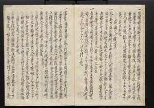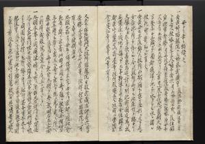 | 解説 | 内扉に「原本上書ニ延宝五年六月廿八日土屋平十郎殿より恩贈之ト云々」と朱書あり。奥書に「右一巻以吾藩公文庫蔵書騰写之畢,明治三年九月四日,柿園森田平次」とあり。 |