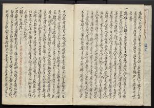 | 解説 | 一時前田氏に仕えていた著者が末森の戦から関ケ原役までの実歴を後に記したものといわれ,元禄7年加賀藩医師坂井順安が京で入手,前田綱紀に献上した。奥書に「右可児才蔵嘗所手記之誓文日記者,以吾藩文庫蔵本如原本之書体書写之,但暫時之事故,摘其要文所々略写之了,明治三年九月晦日,柿園森田平次誌」とあり。末尾に「古兵談」「校合雑記」等より可児才蔵に関する記事を抄出する。 |