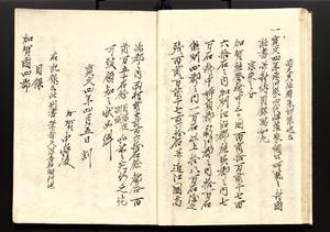 | 解説 | 前田家の封国加恩について織田信長以来の朱印状を集録して考按を加えたもの。大聖寺藩領・能登土方氏領も附記する。明治31年4月23日脱稿。 |