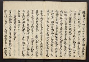 | 解説 | 内容は,天王寺表惣攻同落城之事,秀頼卿御生害之事,秀頼卿愛子并落人溺捕之事,武家古法書大樹江被授事,公御病附薨去。 |