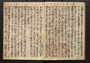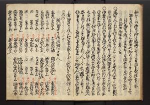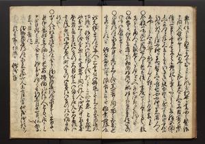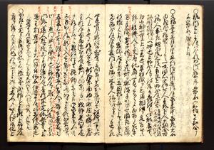 | 解説 | 朱書入(盛昌カ)あり。末尾に1丁を付し「此書者吾家四世小兵衛盛昌老名西岸翁之親筆也,其所記載之事蹟,雖不巨細,実当時之実録,而可謂赤穂義士之亀鏡矣,明治廿八年八月上旬,柿園舎主人識」とあり |