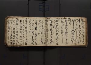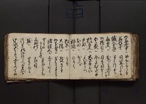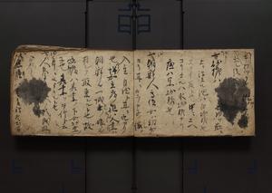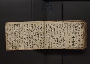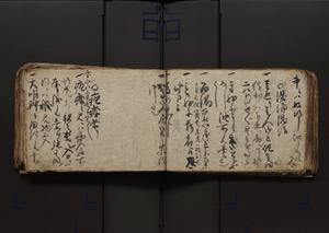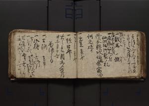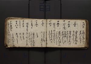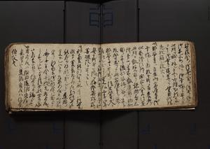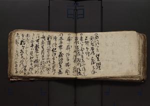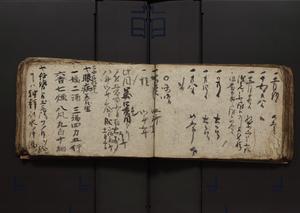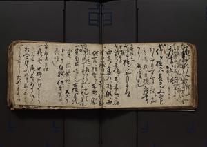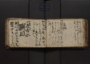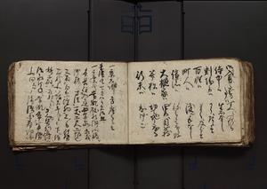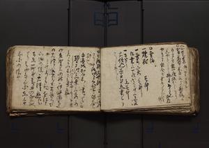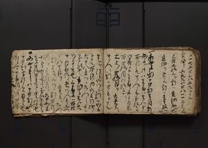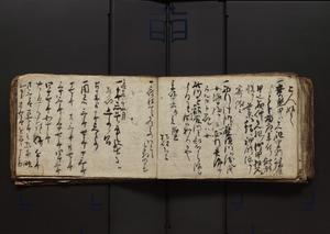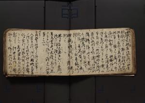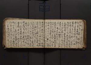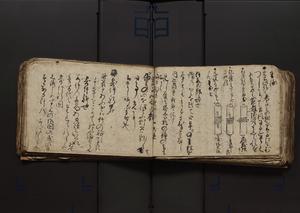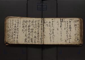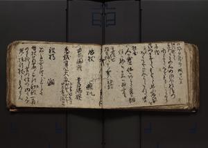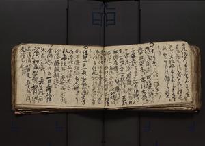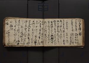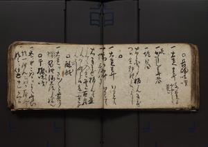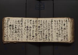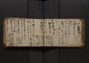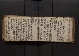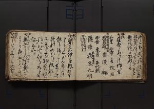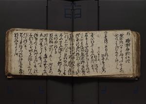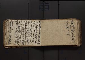 | 解説 | 内容は元禄~享保頃。見返しに「此雑記ハ,吾家四代小兵衛盛昌老名西岸翁座右ノ雑筆ニテ,巻尾ハ五代小兵衛常昌老名定運翁ノ筆記也,西岸翁ノ漸得雑記ニ載ラレタル説モアレト,其ハ纔ニテ,多分ハ此説ニアルノミナレハ,世々祖先ノ雑記トテ家伝ノ旧簿トシ伝来スル由,吾父翠園翁ノ玉ヘリ,今表紙ヲ付此事ヲ記載ス,森田平次」と朱書あり。 |