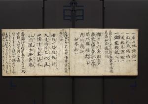 | 解説 | 盛昌の雑記で主に歌が多く記されている。内題と奥書を良見が付し,明治28年8月10日の奥書には,盛昌の評伝と,祖父修陳が祖先の筆蹟を什物となし守り伝えた旨を記す。 |