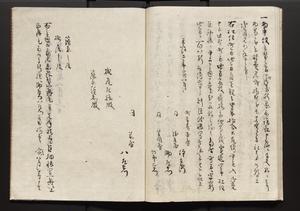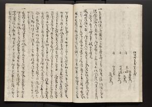 | 解説 | 天明2年8月,町年寄の車屋伊兵衛・徳光屋助左衛門・笠間屋六郎右衛門・米屋八左衛門が槻尾左膳・篠原左次右衛門へ差出したもの。内容は,元禄13年由来書上,承応~明暦御先代様江従松任町中御祝儀等指上候ニ付御印被成為下之写,寛文10年松任町御田地惣草高并町中拝領地由来,寛文10年村御印写,寛文5年7月御納所之外小物成上ル覚,正徳3年松任役人共勤方之儀御書立を以被仰渡候写。奥書に「右以湯浅氏弦斎翁之本謄写之畢,嘉永弐年己酉八月廿一日」とあり |
