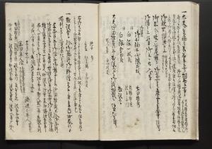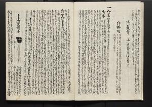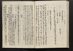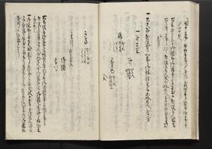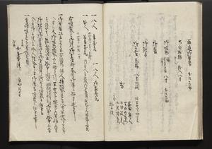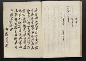 | 解説 | 加賀藩年始の諸作法を記したもの。末尾に1丁を付し,「右年頭儀式者,吾金沢藩十三世権中納言斉泰卿,嘉永五年春一時如旧例於城内諸士年頭儀式被申付,其際高木有制被儀式書加注解,北藩年始礼典、為旧藩之紀念也,柿園良見識」とあり。 |