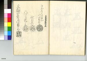 | 解説 | 社寺・諸士・町在に伝えた前田家の判印を影印したもの。嘉永7年の成立。前田利家~綱紀の歴代藩主と,芳春院,玉泉院,前田利政,利次の判・印を収む。 |