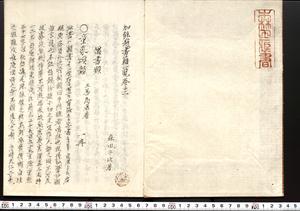 | 解説 | 加・能・越三州の人物や事物に関する書籍を20項に分類し1冊毎に解説をつけたもの。明治18年3月脱稿。明治18年6月に三宅恒(立軒)の序を付す。 |