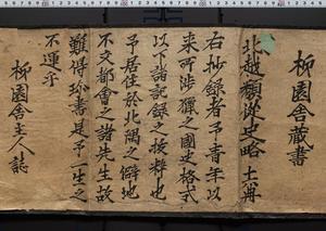 | 解説 | 青年以来渉猟した書籍より加越能三州関係の事件を抄出,出典書籍により分類したもの。奥書に「菅公書斎記曰,学問之道抄出,為宗抄出之用稿草為本矣,予青年以渉猟書籍甚僅々也,但為吾旧藩封内加能越三州,抄出三州関係之事件,而紙葉稍積矣,今部類成冊子,号北越類従史略,伝于後昆云爾,時明治三十三年二月下旬,柿園紀良見」とあり。 |