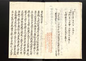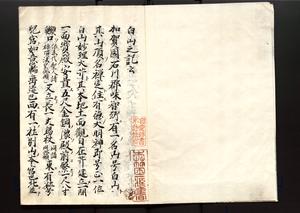 | 解説 | 白山比咩神社所蔵本の写。奥書に朱筆で「嘉永元年五月七日十八日両日参社,於長吏澄遥之客院摸写之畢、但原本長九寸二分幅六寸也」とあり。朱書入あり。末尾に「白山記附言」(嘉永元年5月森田良見著)を付し考証を加える。 |