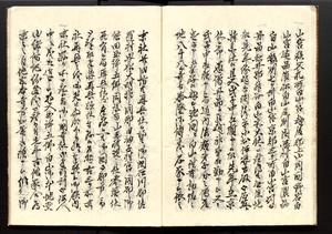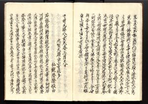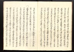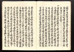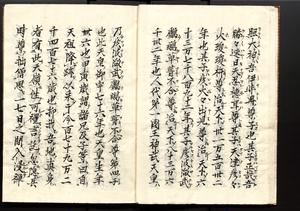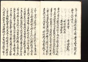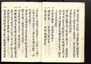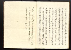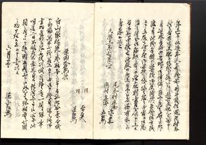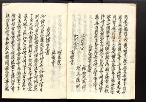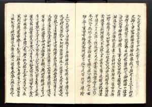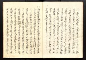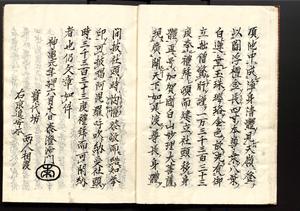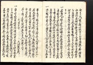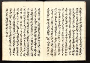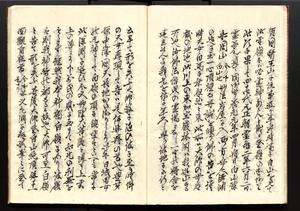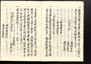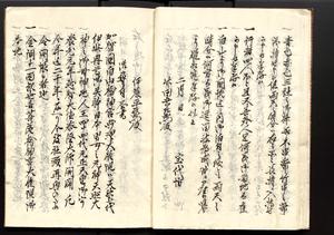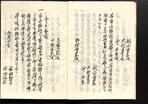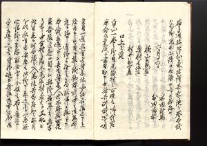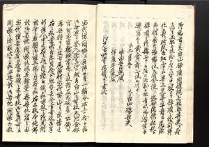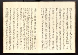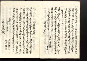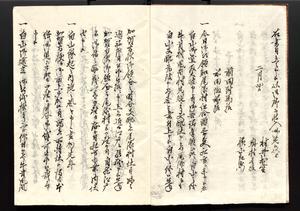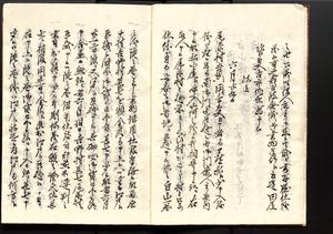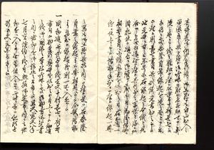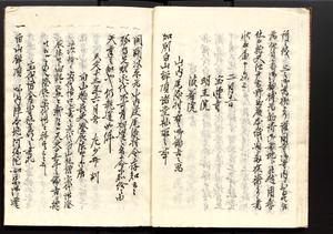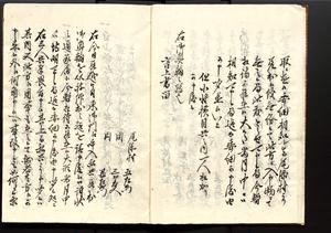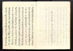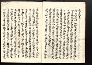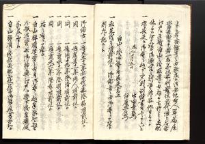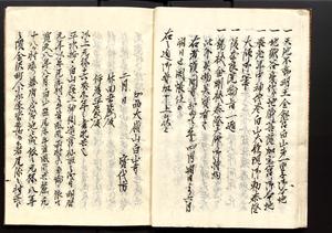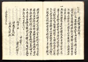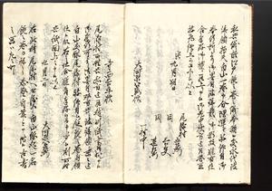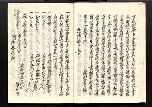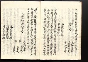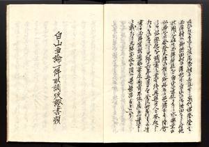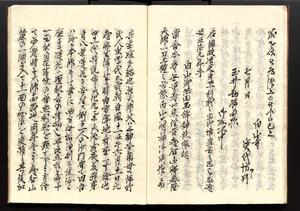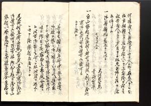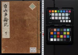 | 解説 | 第2冊末尾に「白山争論一件取調攷証書類」を付す。第1冊末尾に「右白山争論一件留書抜粋ハ,旧藩中御直封白山争論一件ト称シ,白木等長持入ニ相成,鄭重之取扱ニテ他見不相成留記并山中之絵図数帖入有之,右ハ明暦元年初テ山論発起セシヨリ以来ノ留記ニテ,絵図モ其頃被命タル本紙ナレハ,実ニ証トスルニ足レリ,予今度白山一件ノ御用掛ナルヲ以テ,悉ク右留書等ヲ取調ニ付,要文ヲ抜粋シ,考徴ニ備フ者也,右直封小長持ハ,旧藩中表納戸奉行ノ預リニテ,他見ヲ禁セラレタリト云,明治五年壬申九月,於美川町寓居森田平次誌」と奥書あり。 |