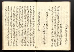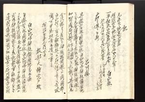| 解説 | 寛文8年以来幕府領となっていた白山麓18ヶ村が明治3年本保県,翌4年足羽県の所管となり,石川県との間に所属をめぐる問題がおこって同11年石川県所管となった顚末と,同7年神仏習合禁止の趣旨徹底のため白山山上の仏像が下ろされた経緯についての関係文書を採録したもの。明治7年12月の編纂。末尾に「白山事件余論」を付す。明治9年初月5日自序を付す。 |