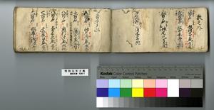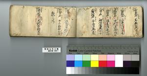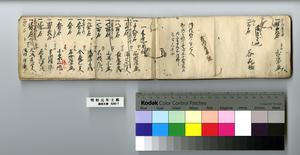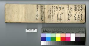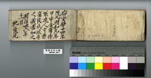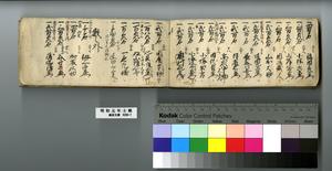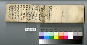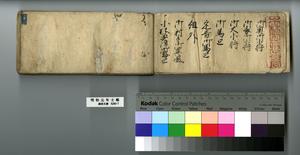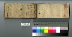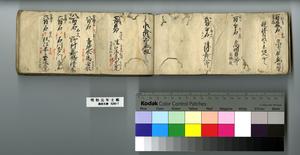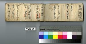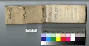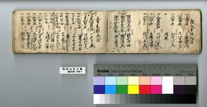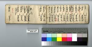 | 解説 | 内扉に「宝暦十四甲申歳」「一木主忠」と押紙あり。御奥御小将・御表御小将・御大小将・御馬廻・定番御馬廻・組外・御射手御異風・小松魚津御馬廻の士の姓名・禄高・年齢・役職等が記されており,短冊に切ったものを貼付して作成されている。明和8年まで朱書の加筆あり。末尾に「右宝暦十四年改元明和元年甲申金沢侍帳,友人宇野富良氏被恵之,蔵書加之,明治丗八年十一月,紀良見」と識語あり。 |