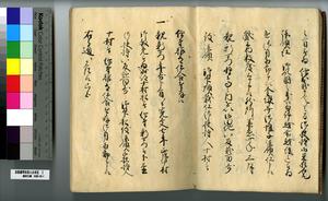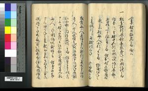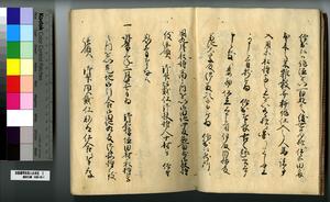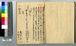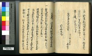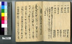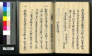 | 解説 | 第1冊題簽に「原本」と朱書あり。第1~4冊は「御郡奉行支配并江州今津村弘川村ニ而御扶持被下百姓由来相記申帳」,第5冊はキリシタン牢人・他国町人・蒔絵師等,扶持を下された様々な人の由緒を収む。 |