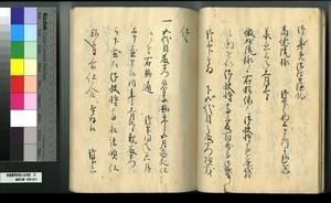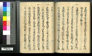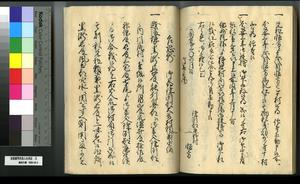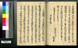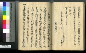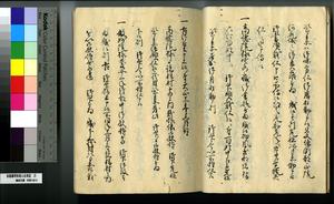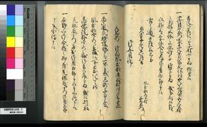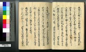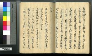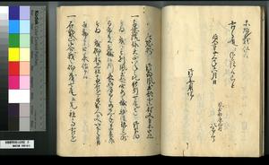 | 解説 | 第1冊題簽に「原本」と朱書あり。第1~4冊は「御郡奉行支配并江州今津村弘川村ニ而御扶持被下百姓由来相記申帳」,第5冊はキリシタン牢人・他国町人・蒔絵師等,扶持を下された様々な人の由緒を収む。 |