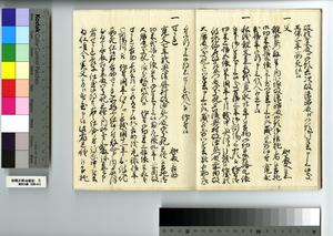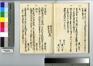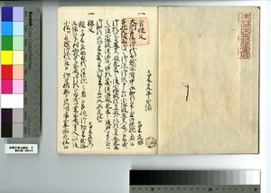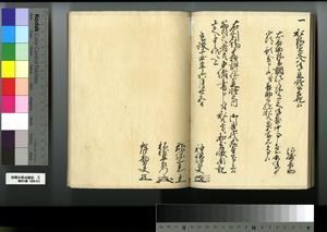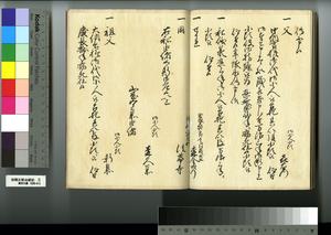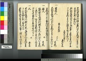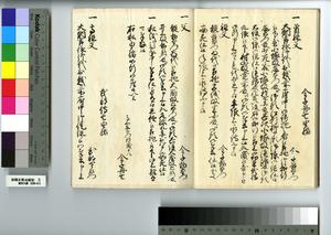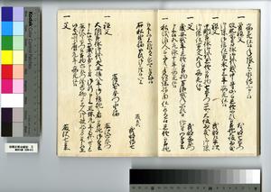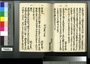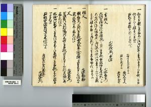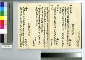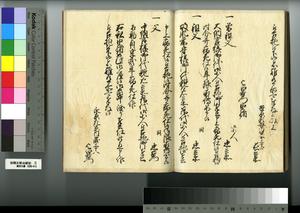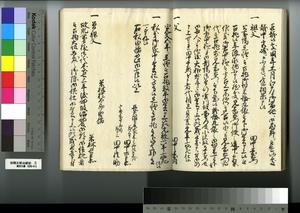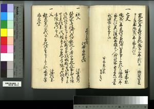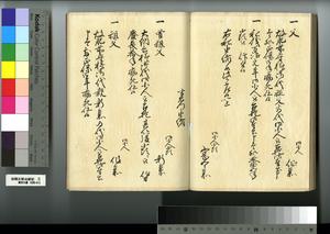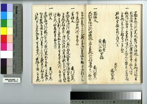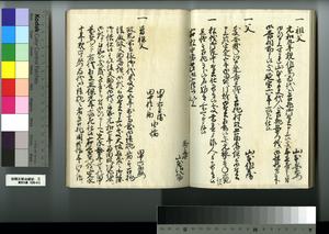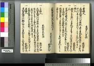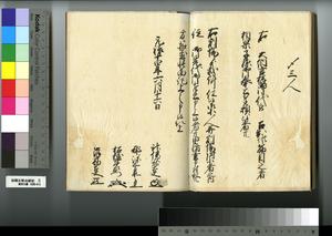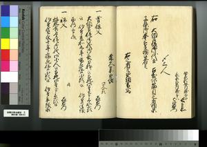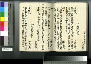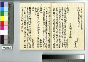 | 解説 | 第1冊題簽に「原本」と朱書あり。元禄14年,調査を命ぜられて提出した加賀藩足軽の由緒書。 |