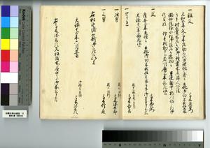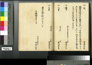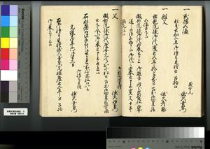 | 解説 | 第1冊題簽に「原本」と朱書あり。元禄14年,調査を命ぜられて提出した加賀藩足軽の由緒書。 |