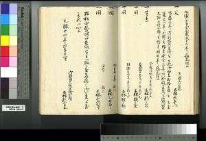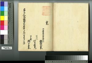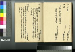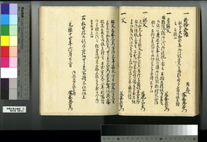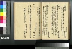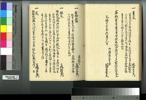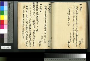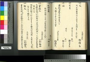 | 解説 | 第1冊題簽に「原本」と朱書あり。元禄14年,調査を命ぜられて提出した加賀藩足軽の由緒書。 |