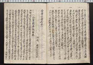 | 解説 | 金沢の地名の由来等を記したもの。奥書に「校正金沢古蹟志三十二巻,右金沢古蹟志者,明治二十五年倉卒著述之処,更校正其誤謬,増補遺漏,同三十五年四月起筆,十一月全部謄写,翌年三月令校合畢,柿園舎主人紀良見識于時八十一齢」とあり。 |