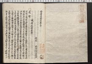 | 解説 | 金沢の地名の由来等を記したもの。奥書に「校正金沢古蹟志三十二巻,右金沢古蹟志者,明治二十五年倉卒著述之処,更校正其誤謬,増補遺漏,同三十五年四月起筆,十一月全部謄写,翌年三月令校合畢,柿園舎主人紀良見識于時八十一齢」とあり。 |