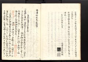 | 解説 | 外題は同書名より良見が朱書で訂正したもの。天保14年,湯浅進良は家蔵の近江国高島郡にあったという加賀藩邸の古図を藩に献上,この時進良が著した考証「海津邸地考」に,備考(湯浅祗庸著),追考(森田平次著)を付したもの。巻頭に「近江国海津屋敷古図写」(良見手写39×29cm)を貼付する。 |