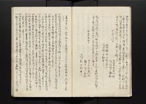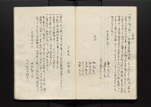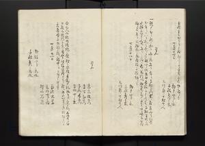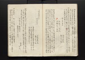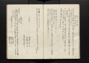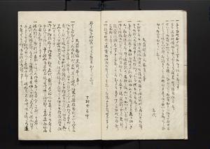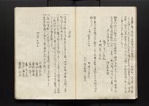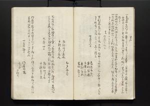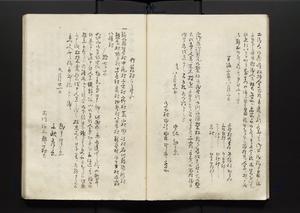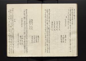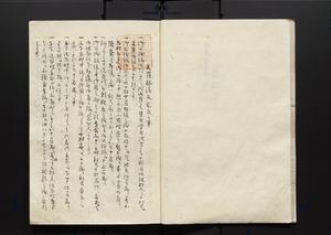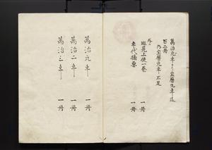 | 解説 | 内扉に「高沢平次右衛門輯,福留村六郎左衛門書」とあり。目録末尾に朱筆で「右年代摘要ハ,改作所旧記之標目也,改作所旧記ハ改作奉行高沢平次右衛門之編輯ナリ,故ニ世俗高沢録トモ称ス,此書ノ抜粋所蔵スルモノ多シ,然レトモ全部ノ写,今甚稀ナリ,万治以来ノ記録多シト雖,互ニ誤リ有テ拠トシ難シ,改作所旧記ハ実ニ其時代ノ書記ニテ三州ノ事蹟ヲ考ルニ,此書ニ過タルハナシ,三州ニテノ珍書ト云ヘシ,柿園森田良見識」と加筆あり。附録末尾に「此一冊高沢平次右衛門之筆記也,没後反古之内ヨリ取出,一枚々々散々ナシリヲ,福留村六郎右衛門・酒見村八三郎此両人取繕テ一冊与ナシタル也,(中略)島兢白」と朱筆の奥書あり。 |