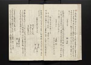 | 解説 | 内扉に「高沢平次右衛門輯,福留村六郎左衛門書」とあり。目録末尾に朱筆で「右年代摘要ハ,改作所旧記之標目也,改作所旧記ハ改作奉行高沢平次右衛門之編輯ナリ,故ニ世俗高沢録トモ称ス,此書ノ抜粋所蔵スルモノ多シ,然レトモ全部ノ写,今甚稀ナリ,万治以来ノ記録多シト雖,互ニ誤リ有テ拠トシ難シ,改作所旧記ハ実ニ其時代ノ書記ニテ三州ノ事蹟ヲ考ルニ,此書ニ過タルハナシ,三州ニテノ珍書ト云ヘシ,柿園森田良見識」と加筆あり。附録末尾に「此一冊高沢平次右衛門之筆記也,没後反古之内ヨリ取出,一枚々々散々ナシリヲ,福留村六郎右衛門・酒見村八三郎此両人取繕テ一冊与ナシタル也,(中略)島兢白」と朱筆の奥書あり。 |