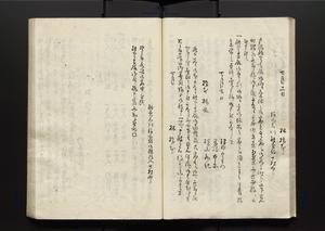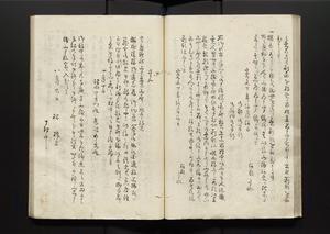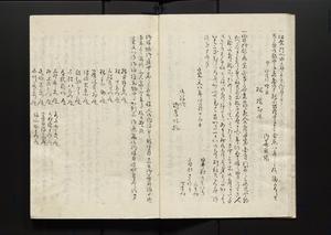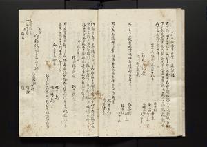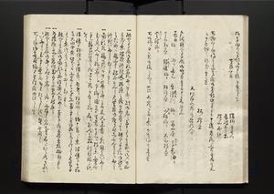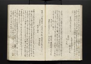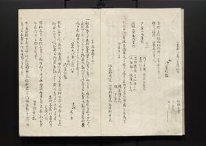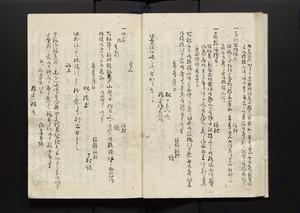 | 解説 | 内扉に「高沢平次右衛門輯,福留村六郎左衛門書」とあり。目録末尾に朱筆で「右年代摘要ハ,改作所旧記之標目也,改作所旧記ハ改作奉行高沢平次右衛門之編輯ナリ,故ニ世俗高沢録トモ称ス,此書ノ抜粋所蔵スルモノ多シ,然レトモ全部ノ写,今甚稀ナリ,万治以来ノ記録多シト雖,互ニ誤リ有テ拠トシ難シ,改作所旧記ハ実ニ其時代ノ書記ニテ三州ノ事蹟ヲ考ルニ,此書ニ過タルハナシ,三州ニテノ珍書ト云ヘシ,柿園森田良見識」と加筆あり。附録末尾に「此一冊高沢平次右衛門之筆記也,没後反古之内ヨリ取出,一枚々々散々ナシリヲ,福留村六郎右衛門・酒見村八三郎此両人取繕テ一冊与ナシタル也,(中略)島兢白」と朱筆の奥書あり。 |