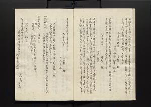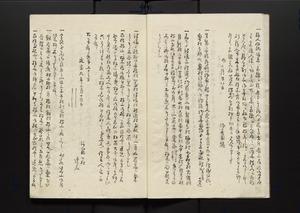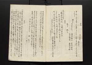 | 解説 | 内扉に「高沢平次右衛門輯,福留村六郎左衛門書」とあり。目録末尾に朱筆で「右年代摘要ハ,改作所旧記之標目也,改作所旧記ハ改作奉行高沢平次右衛門之編輯ナリ,故ニ世俗高沢録トモ称ス,此書ノ抜粋所蔵スルモノ多シ,然レトモ全部ノ写,今甚稀ナリ,万治以来ノ記録多シト雖,互ニ誤リ有テ拠トシ難シ,改作所旧記ハ実ニ其時代ノ書記ニテ三州ノ事蹟ヲ考ルニ,此書ニ過タルハナシ,三州ニテノ珍書ト云ヘシ,柿園森田良見識」と加筆あり。附録末尾に「此一冊高沢平次右衛門之筆記也,没後反古之内ヨリ取出,一枚々々散々ナシリヲ,福留村六郎右衛門・酒見村八三郎此両人取繕テ一冊与ナシタル也,(中略)島兢白」と朱筆の奥書あり。 |