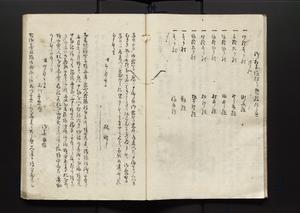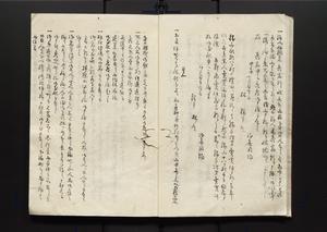 | 解説 | 内扉に「高沢平次右衛門輯,福留村六郎左衛門書」とあり。目録末尾に朱筆で「右年代摘要ハ,改作所旧記之標目也,改作所旧記ハ改作奉行高沢平次右衛門之編輯ナリ,故ニ世俗高沢録トモ称ス,此書ノ抜粋所蔵スルモノ多シ,然レトモ全部ノ写,今甚稀ナリ,万治以来ノ記録多シト雖,互ニ誤リ有テ拠トシ難シ,改作所旧記ハ実ニ其時代ノ書記ニテ三州ノ事蹟ヲ考ルニ,此書ニ過タルハナシ,三州ニテノ珍書ト云ヘシ,柿園森田良見識」と加筆あり。附録末尾に「此一冊高沢平次右衛門之筆記也,没後反古之内ヨリ取出,一枚々々散々ナシリヲ,福留村六郎右衛門・酒見村八三郎此両人取繕テ一冊与ナシタル也,(中略)島兢白」と朱筆の奥書あり。 |