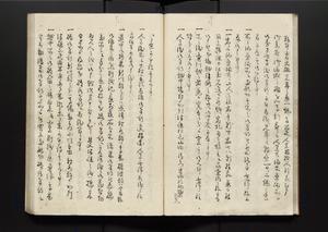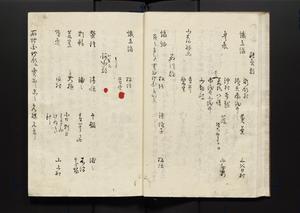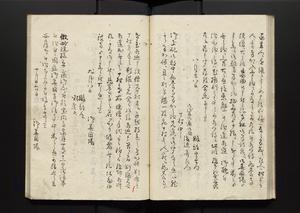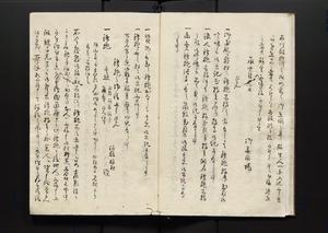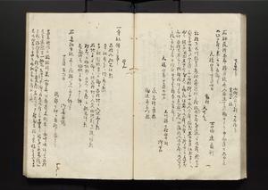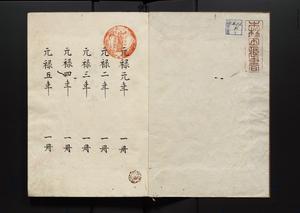 | 解説 | 内扉に「高沢平次右衛門輯,福留村六郎左衛門書」とあり。目録末尾に朱筆で「右年代摘要ハ,改作所旧記之標目也,改作所旧記ハ改作奉行高沢平次右衛門之編輯ナリ,故ニ世俗高沢録トモ称ス,此書ノ抜粋所蔵スルモノ多シ,然レトモ全部ノ写,今甚稀ナリ,万治以来ノ記録多シト雖,互ニ誤リ有テ拠トシ難シ,改作所旧記ハ実ニ其時代ノ書記ニテ三州ノ事蹟ヲ考ルニ,此書ニ過タルハナシ,三州ニテノ珍書ト云ヘシ,柿園森田良見識」と加筆あり。附録末尾に「此一冊高沢平次右衛門之筆記也,没後反古之内ヨリ取出,一枚々々散々ナシリヲ,福留村六郎右衛門・酒見村八三郎此両人取繕テ一冊与ナシタル也,(中略)島兢白」と朱筆の奥書あり。 |