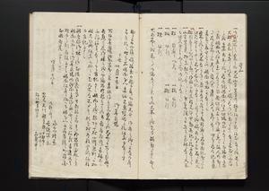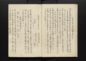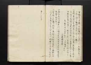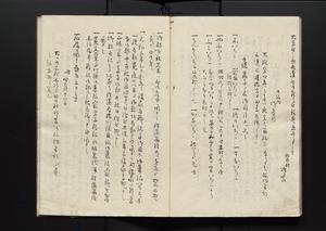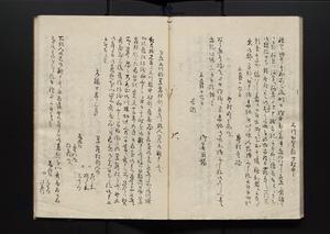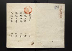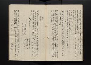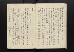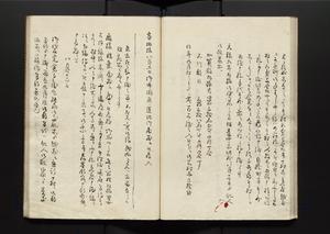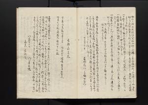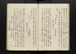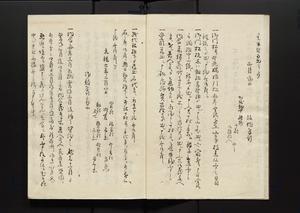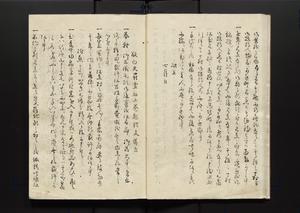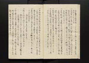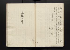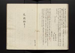 | 解説 | 内扉に「高沢平次右衛門輯,福留村六郎左衛門書」とあり。目録末尾に朱筆で「右年代摘要ハ,改作所旧記之標目也,改作所旧記ハ改作奉行高沢平次右衛門之編輯ナリ,故ニ世俗高沢録トモ称ス,此書ノ抜粋所蔵スルモノ多シ,然レトモ全部ノ写,今甚稀ナリ,万治以来ノ記録多シト雖,互ニ誤リ有テ拠トシ難シ,改作所旧記ハ実ニ其時代ノ書記ニテ三州ノ事蹟ヲ考ルニ,此書ニ過タルハナシ,三州ニテノ珍書ト云ヘシ,柿園森田良見識」と加筆あり。附録末尾に「此一冊高沢平次右衛門之筆記也,没後反古之内ヨリ取出,一枚々々散々ナシリヲ,福留村六郎右衛門・酒見村八三郎此両人取繕テ一冊与ナシタル也,(中略)島兢白」と朱筆の奥書あり。 |