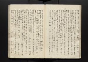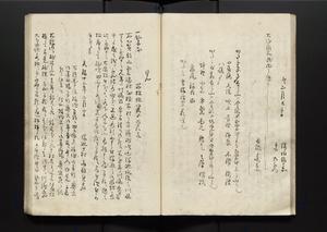 | 解説 | 内扉に「高沢平次右衛門輯,福留村六郎左衛門書」とあり。目録末尾に朱筆で「右年代摘要ハ,改作所旧記之標目也,改作所旧記ハ改作奉行高沢平次右衛門之編輯ナリ,故ニ世俗高沢録トモ称ス,此書ノ抜粋所蔵スルモノ多シ,然レトモ全部ノ写,今甚稀ナリ,万治以来ノ記録多シト雖,互ニ誤リ有テ拠トシ難シ,改作所旧記ハ実ニ其時代ノ書記ニテ三州ノ事蹟ヲ考ルニ,此書ニ過タルハナシ,三州ニテノ珍書ト云ヘシ,柿園森田良見識」と加筆あり。附録末尾に「此一冊高沢平次右衛門之筆記也,没後反古之内ヨリ取出,一枚々々散々ナシリヲ,福留村六郎右衛門・酒見村八三郎此両人取繕テ一冊与ナシタル也,(中略)島兢白」と朱筆の奥書あり。 |