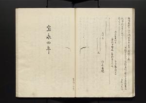 | 解説 | 内扉に「高沢平次右衛門輯,福留村六郎左衛門書」とあり。目録末尾に朱筆で「右年代摘要ハ,改作所旧記之標目也,改作所旧記ハ改作奉行高沢平次右衛門之編輯ナリ,故ニ世俗高沢録トモ称ス,此書ノ抜粋所蔵スルモノ多シ,然レトモ全部ノ写,今甚稀ナリ,万治以来ノ記録多シト雖,互ニ誤リ有テ拠トシ難シ,改作所旧記ハ実ニ其時代ノ書記ニテ三州ノ事蹟ヲ考ルニ,此書ニ過タルハナシ,三州ニテノ珍書ト云ヘシ,柿園森田良見識」と加筆あり。附録末尾に「此一冊高沢平次右衛門之筆記也,没後反古之内ヨリ取出,一枚々々散々ナシリヲ,福留村六郎右衛門・酒見村八三郎此両人取繕テ一冊与ナシタル也,(中略)島兢白」と朱筆の奥書あり。 |