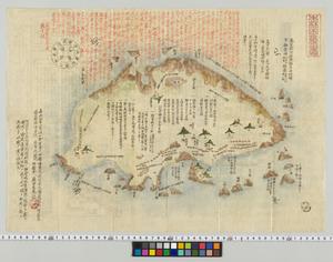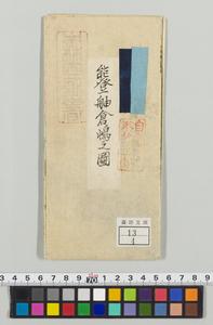 | 解説 | 内題は「鳳至郡河原田組名舟村領字舳倉嶋旧名沖津島絵図」。続けて「以曲尺二分為十間」記あり。奥書は墨筆で「嘉永四年二月,以小倉有年之秘図模写之,是近年之撰図而,所謂高木藤右衛門信由以国命所図也,柿園舎森田良見誌(印●)」記あり。海は青色,海岸沿の岩と人家,海上の嶋・瀬は茶色,木々は緑色で彩色し,絵図内に嶋について概略の記あり。端書に朱筆で「森田良見考之載于此」と記し,考察の記あり。絵図の裏に,明治32年9月,北国新聞に掲載された「舳倉島水産調査(一)阿部松之進」の記事を貼附。印記●●●。 |