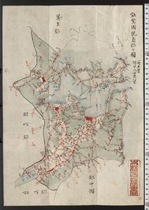 | 解説 | 内題は「能登国鹿島郡之図」。続けて「一町五厘以一寸八分為一厘」記あり。現在の能登島を「島ノ地」と記。七尾湾は青色,山地は萌黄色,平地は白色,道筋は朱線で彩色。中島・田鶴浜・七尾の地名は朱の枠内へ,村名は墨筆で朱の円を付して記す。鹿島郡以外の村名は朱記。道路と海上の里程の書入あり。印記●●。 |
