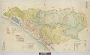 | 解説 | 内題は「能美郡石川郡河北郡一町五厘略絵図」。奥書は墨筆で「右以,友人小倉有年所蔵図模写之且一校畢,嘉永元年四月写之 森田良見(印●)」記あり。道筋は朱線,池・川・潟・海は青色,山地は緑色に彩色。能美郡・石川郡・河北郡内を各組と町支配所,平泉寺支配所,白山下御公領それぞれに色分。御公領并大聖寺御領境は黒の点線で明示。印記●。 |