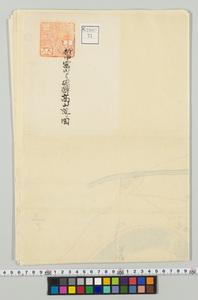 | 解説 | 高山より高岡までの道筋の図。神通川とその支流(青色)に沿って道は朱色,各村名は黄色の小判型の中に,また,戸数と里程も付されている。山や平地の書入なし。印記,落款は絵図内に見当らない。 |