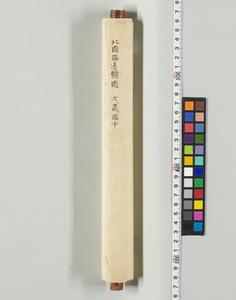 | 解説 | 各巻は「武蔵国中」「上野国中」「信濃国中」「越中国中」「越中国加賀国中」。「武蔵国中」の絵図頭に次の如き11項目の記あり。「従江戸金沢ヘノ道法,二分一町之つもりニ仕候,方角吟味仕候,朱之筋ハ道すぢにて御座候,道すじニ黒く仕候ハ橋にて御座候,黄に絵取申候ハ家々にて御座候,●如此に仕候内之書附ハ馬次宿の名にて御座候,○如此に仕候内之書附ハ村々の名にて御座候,△如此仕候ハ官々にて御座候,名所旧跡承及候分書附申候,山々の景其の所々之景をあらかた申候」。江戸麟祥寺より金沢までの当時の北国街道を5巻に分けて丁寧に描い |