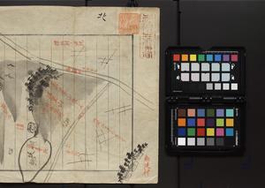 | 解説 | 金沢藩の罫紙の裏に現地で画いたと見られる花山法皇御陵の略図で,前図(No.399)の下書と思われる。印記●。 |