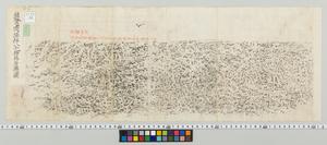 | 解説 | 奥書は朱筆で「能登国羽咋郡堀松庄町村八千鉾社往古所造之石殿之扉石(中略)大嶋村神職岩尾氏以兼帯当社蔵之,安政五年七月十一日,神代社職水野氏被贈之(印●)」記あり。石扉には「大穴持像石神社,応永八年三月二十五日」と銘あり。高さ二尺三寸ハカリ,幅七寸七部内タテツケ二寸三部。題簽の横に拓影あり。印記●。 |