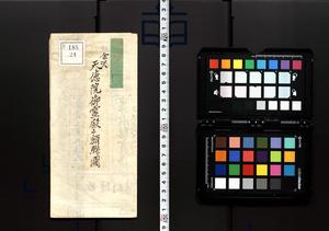 | 解説 | 金龍山栴檀林天徳禅院,三霊殿并に門の額聯の絵図。奥書に墨筆で「文政二年二月二日,湯浅進良謹写」。朱筆で「嘉永二年八月八日再写,(印●)」記あり。天徳院は曹洞宗に属し,金沢上鶴間町に在り金竜山と号す。元和8年前田利常夫人の逝去した時この地に葬り,翌9年大伽藍を傍に営み,夫人の法号によって天徳院と名づけた。印記●。 |