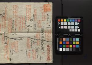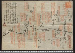 | 解説 | 内題は「江沼郡式内社位置図」。奥書は墨筆で「荒地克彦日,江沼郡ノ式社多ク此海辺ニ集リアルハ,往古官道ナル故ナリト,今此説ニ拠テ図シ見ルニ実ニ数社此海辺ニアリテ,古事録ニ所載ノ事実ニ符号ス,故ニ朱ヲ以テ概略ヲ註ス,明治十一年十一月十日,森田平次識之(印●)」と記あり。印記●。 |